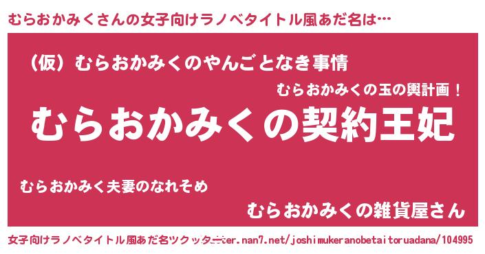 | 男性向けラノベタイトル風あだ名 | 『誰もが恐れるあのむらおかみくが、ぼくの専属メイドになるようです。』 |
