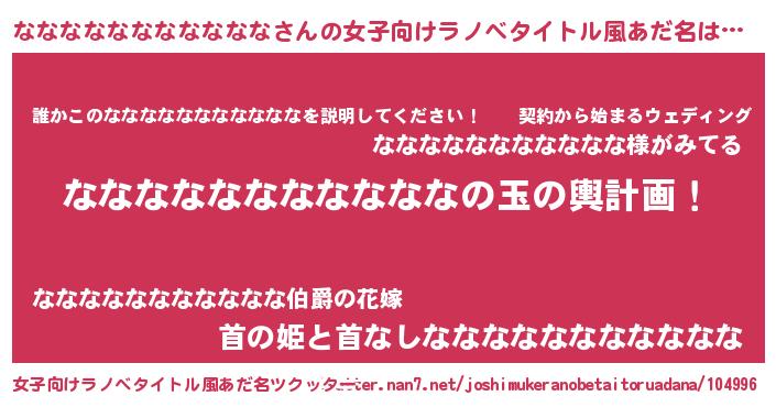 | 胡散臭い通販商品みたいなあだ名 | 『億万長者になれるブレスレット…その名も「ななななななななななな」』 |