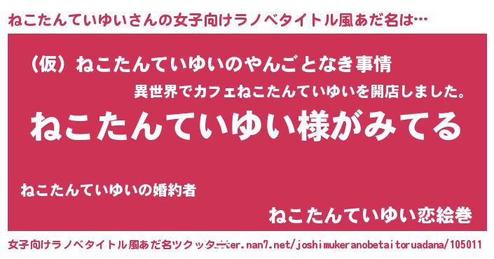 | 意味不明あだ名 | 『とにかく怪しいねこたんていゆい』 |