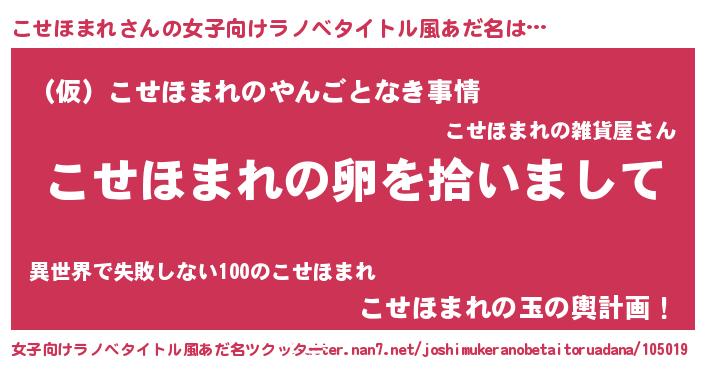 | 胡散臭い通販商品みたいなあだ名 | 『伝統あるペンダント…その名も「こせほまれ」』 |
