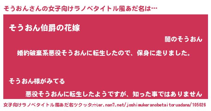 | 男性向けラノベタイトル風あだ名 | 『ソウオンスレイヤー』 |