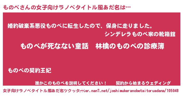| 男性向けラノベタイトル風あだ名 | 『魔弾の王とものべ』『モノベスレイヤー』 |