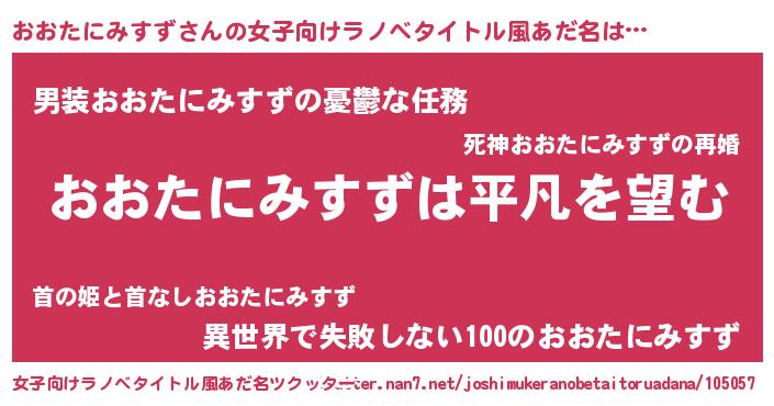 | 男性向けラノベタイトル風あだ名 | 『ダンジョンにおおたにみすずを求めるのは間違っているだろうか』 |
