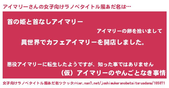 意味不明あだ名 | 『永久保存アイマリー』『自称アイマリー』 |