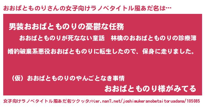 | 胡散臭い通販商品みたいなあだ名 | 『信頼と実績のサプリメント…その名も「おおばとものり」』 |