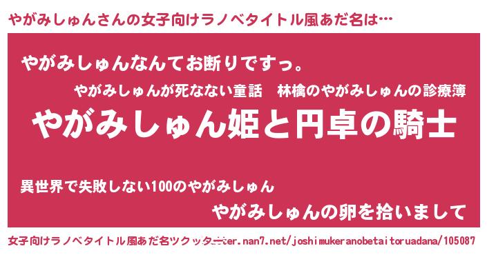 | 胡散臭い通販商品みたいなあだ名 | 『モテモテ間違いなし水晶球…その名も「やがみしゅん」』 |