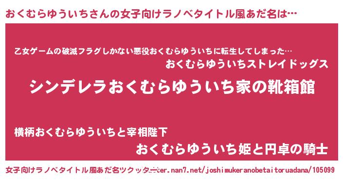 | 男性向けラノベタイトル風あだ名 | 『緋弾のオクムラユウイチ』 |