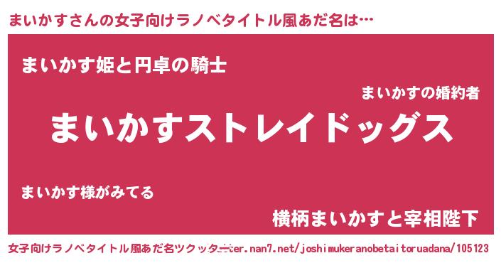 | 男性向けラノベタイトル風あだ名 | 『Re:まいかすから始める異世界生活』 |