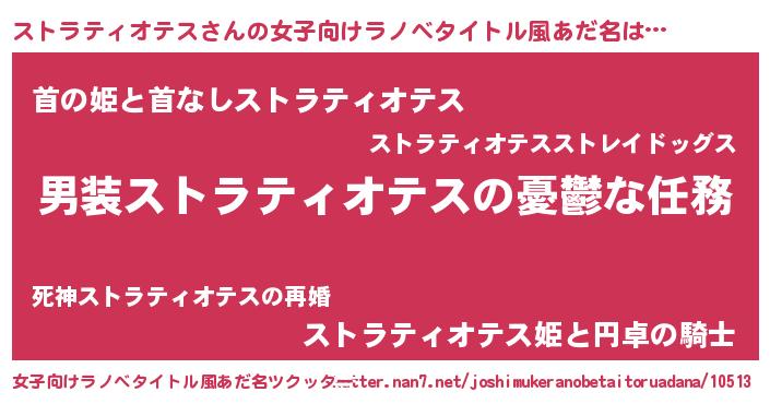 | 胡散臭い通販商品みたいなあだ名 | 『モテモテ間違いなし水晶球…その名も「ストラティオテス」』 |