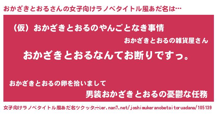 | 男性向けラノベタイトル風あだ名 | 『魔法科高校のおかざきとおる』 |