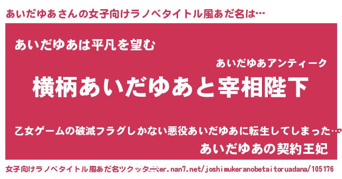 | 男性向けラノベタイトル風あだ名 | 『あいだゆあに滅ぼされるだけの簡単なお仕事です』 |