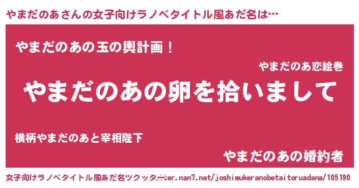 | 男性向けラノベタイトル風あだ名 | 『ダンジョンにやまだのあを求めるのは間違っているだろうか』 |