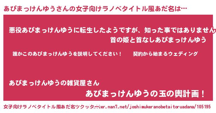 | 男性向けラノベタイトル風あだ名 | 『アピマッケンユウアートオンライン』 |