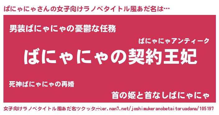 | ヘコむあだ名 | 『ばにゃにゃ(笑)』『ばにお』 |