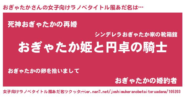 | 胡散臭い通販商品みたいなあだ名 | 『モテモテ間違いなしブレスレット…その名も「おぎゃたか」』 |