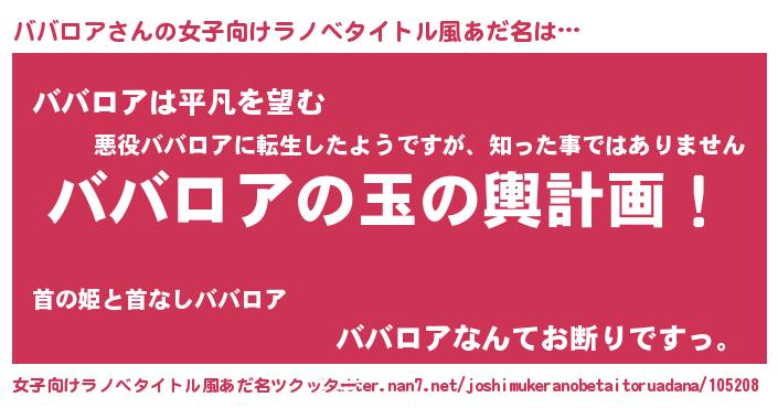 | ヒーロー風カッコイイあだ名 | 『天弓騎士ババ』『超時空戦士ババロア』 |