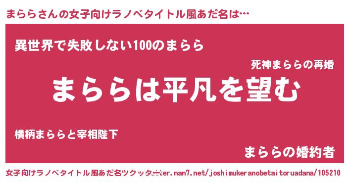 | 男性向けラノベタイトル風あだ名 | 『ダンジョンにまららを求めるのは間違っているだろうか』 |