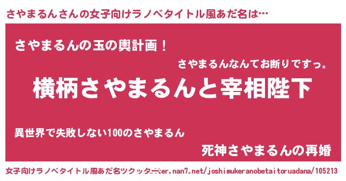| 男性向けラノベタイトル風あだ名 | 『さやまるんに滅ぼされるだけの簡単なお仕事です』 |