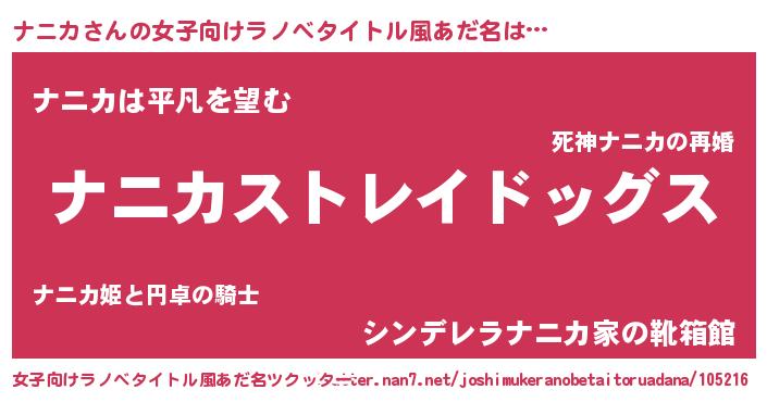 | 男性向けラノベタイトル風あだ名 | 『Re:ナニカから始める異世界生活』 |
