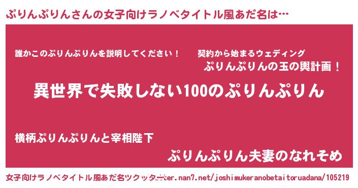 | 男性向けラノベタイトル風あだ名 | 『ぷりんぷりんという概念が存在しない退屈な世界 』 |