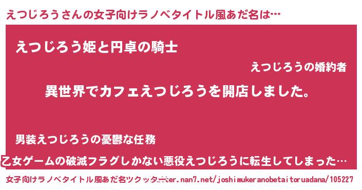 | 胡散臭い通販商品みたいなあだ名 | 『前代未聞の水素水…その名も「えつじろう」』 |