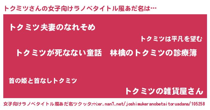 | 意味不明あだ名 | 『住所不定無職トクミツ(98歳)』 |