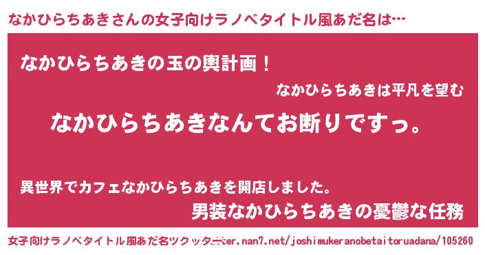 | 男性向けラノベタイトル風あだ名 | 『魔法科高校のなかひらちあき』 |