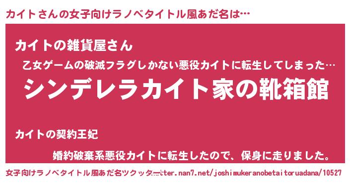 | 意味不明あだ名 | 『カイトフォーエバー』『永久保存カイト』 |