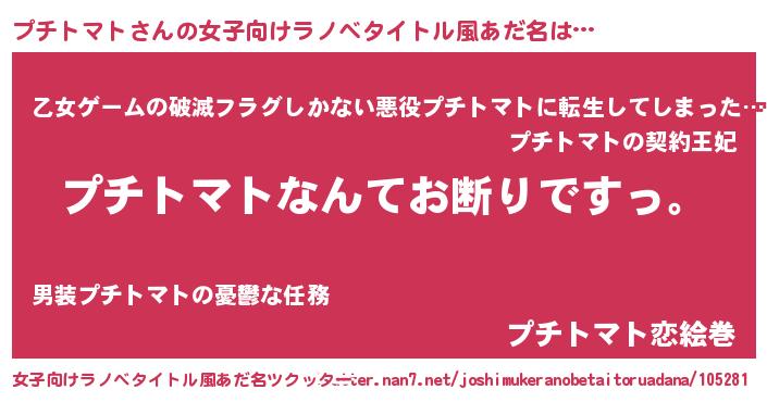 | 男性向けラノベタイトル風あだ名 | 『魔法科高校のプチトマト』 |