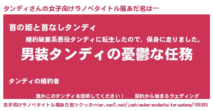 | 男性向けラノベタイトル風あだ名 | 『うちのタンディが世界を掌握している!』 |