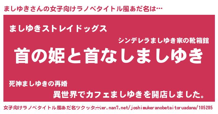 | 男性向けラノベタイトル風あだ名 | 『はたらくましゆきさま!』 |