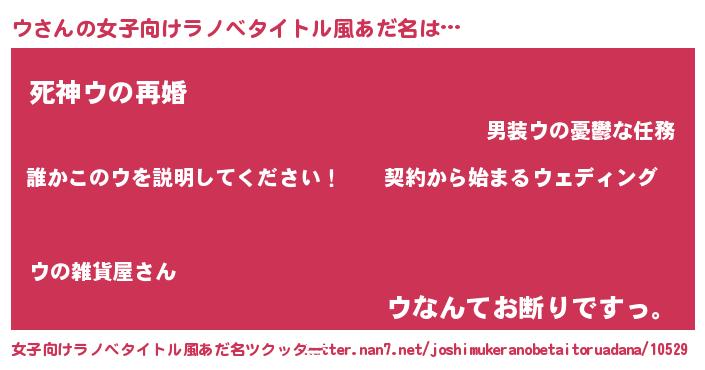 | 男性向けラノベタイトル風あだ名 | 『ウアートオンライン』『魔法科高校のウ』 |