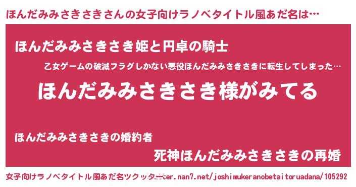 | 男性向けラノベタイトル風あだ名 | 『ほんだみみさきさきの嫁は女の子じゃないと思った?』 |