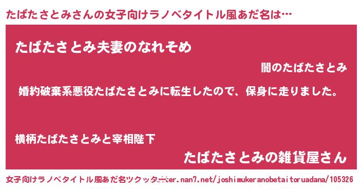 | 男性向けラノベタイトル風あだ名 | 『タバタサトミスレイヤー』 |