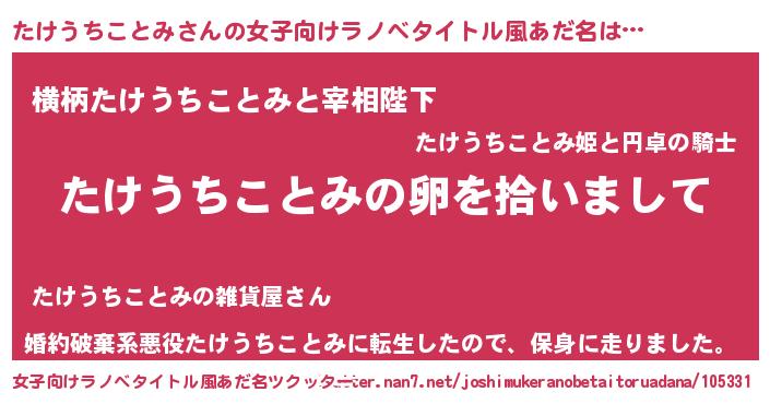 | 男性向けラノベタイトル風あだ名 | 『ダンジョンにたけうちことみを求めるのは間違っているだろうか』 |