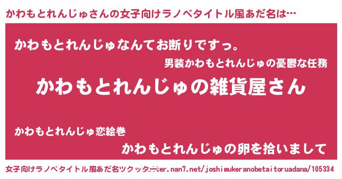 | 男性向けラノベタイトル風あだ名 | 『やはりかわもとれんじゅの青春ラブコメはまちがっている 』 |