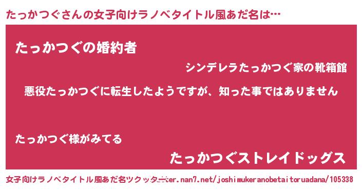| 意味不明あだ名 | 『住所不定無職たっかつぐ(2歳)』 |