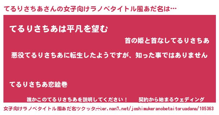 | 男性向けラノベタイトル風あだ名 | 『この素晴らしい世界にてるりさちあを!』 |