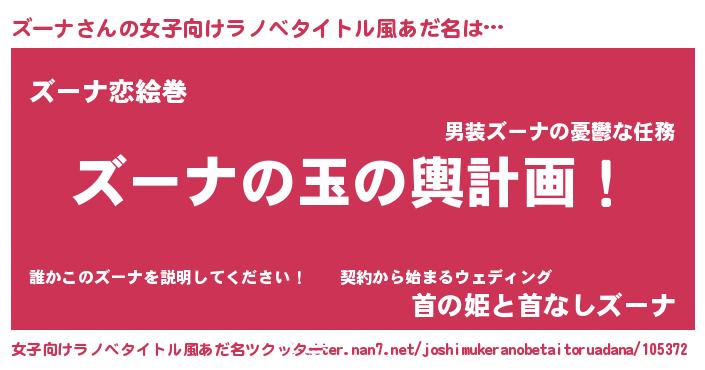 | ヒーロー風カッコイイあだ名 | 『慈愛の使者ズーナ』『スーパーズーナ』 |