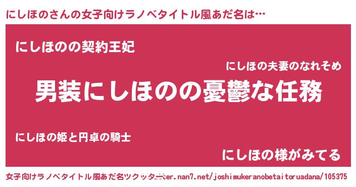 | 男性向けラノベタイトル風あだ名 | 『うちのにしほのが世界を掌握している!』 |