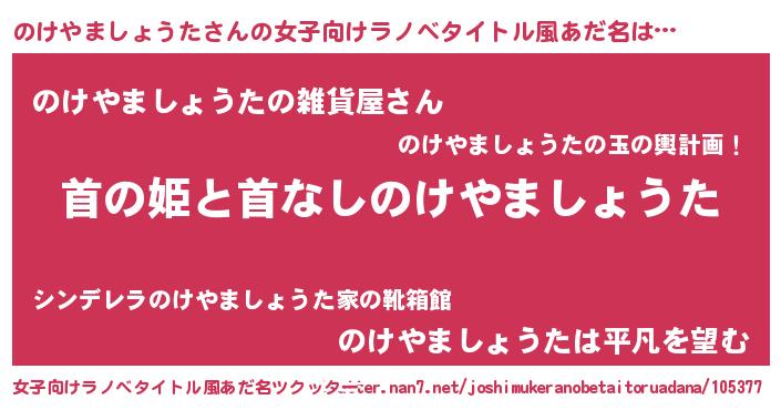 | ファンタジー風あだ名 | 『エターナルノケヤマショウター』 |