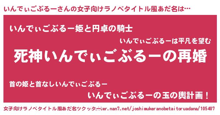 | 欧米人風あだ名 | 『ダニエルいんでぃごぶるー』 |