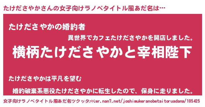 | 男性向けラノベタイトル風あだ名 | 『たけださやかに滅ぼされるだけの簡単なお仕事です』 |