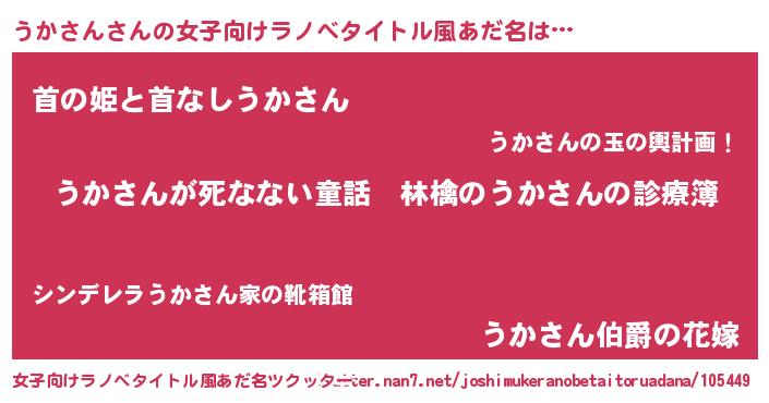 | 意味不明あだ名 | 『住所不定無職うかさん(40歳)』 |