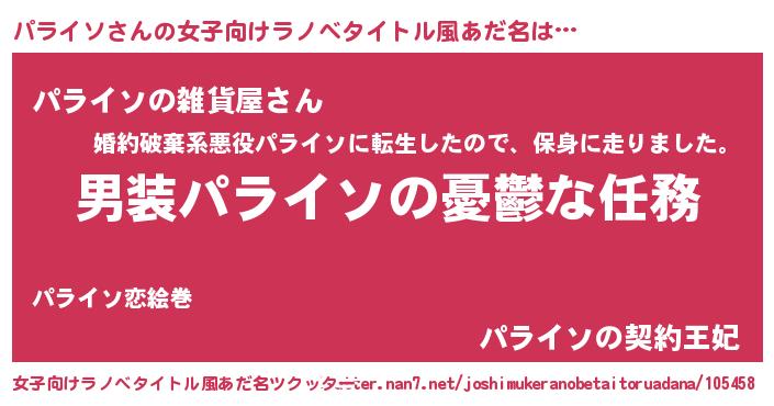 | 胡散臭い通販商品みたいなあだ名 | 『運命の人と巡り会える高級そうな壺…その名も「パライソ」』 |