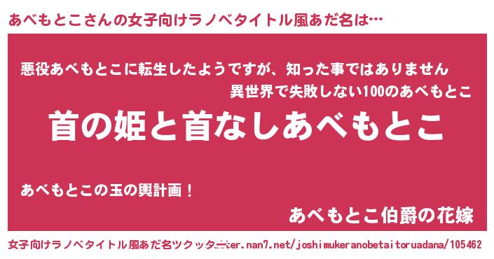 | 胡散臭い通販商品みたいなあだ名 | 『世界中を虜にした世界で10本だけ現存している希少なブランデー…その名も「あべもとこ」』 |