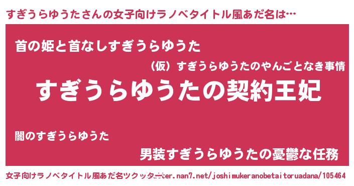 | 男性向けラノベタイトル風あだ名 | 『誰もが恐れるあのすぎうらゆうたが、ぼくの専属メイドになるようです。』 |