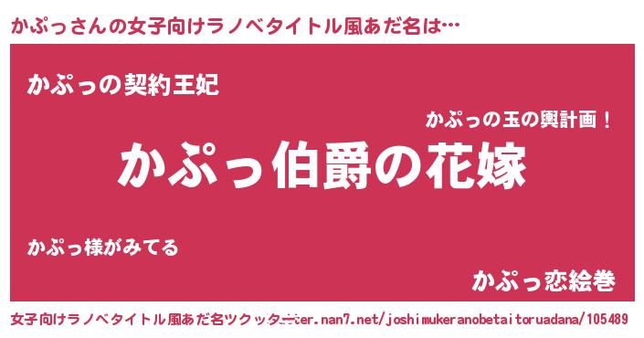 | ファンタジー風あだ名 | 『エターナルカプッー』『カプディッシュ』 |