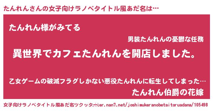 | 男性向けラノベタイトル風あだ名 | 『誰もが恐れるあのたんれんが、ぼくの専属メイドになるようです。』 |