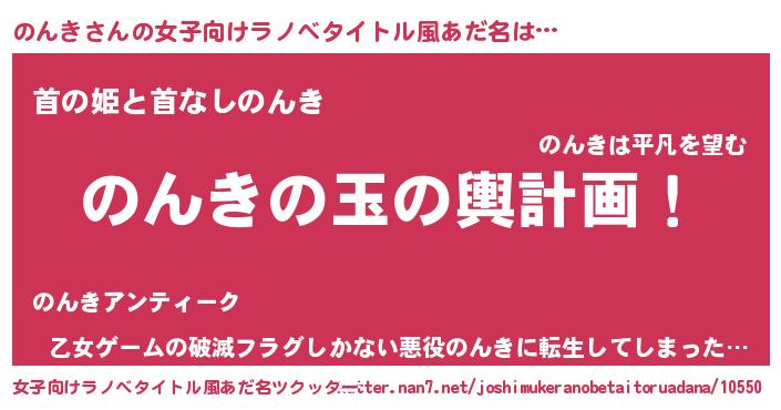| 男性向けラノベタイトル風あだ名 | 『のんき~年齢イコール彼女いない歴の魔法使い~』 |
